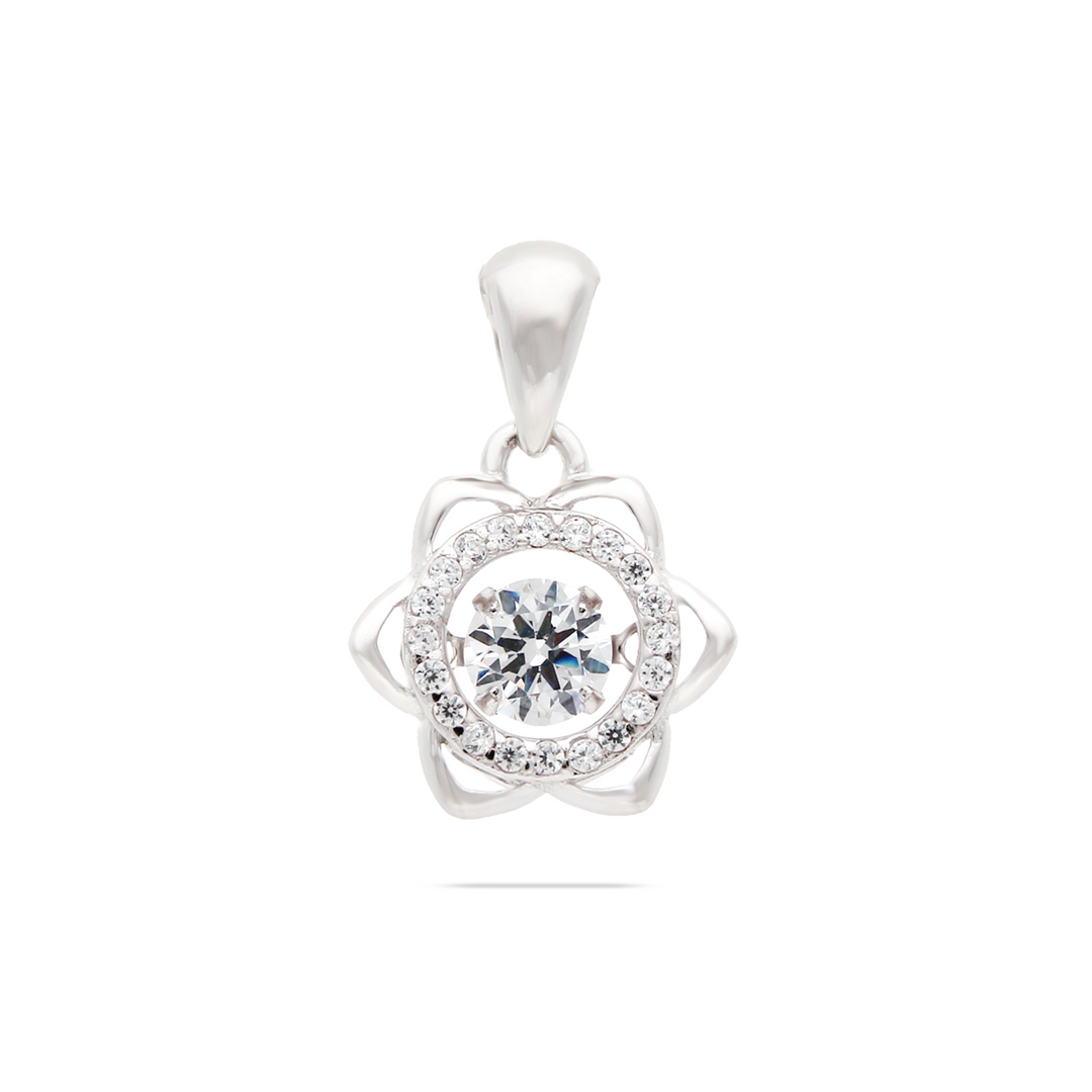 Dancing Gem, Round Cut, White,Rhodium Plated, Without Chain